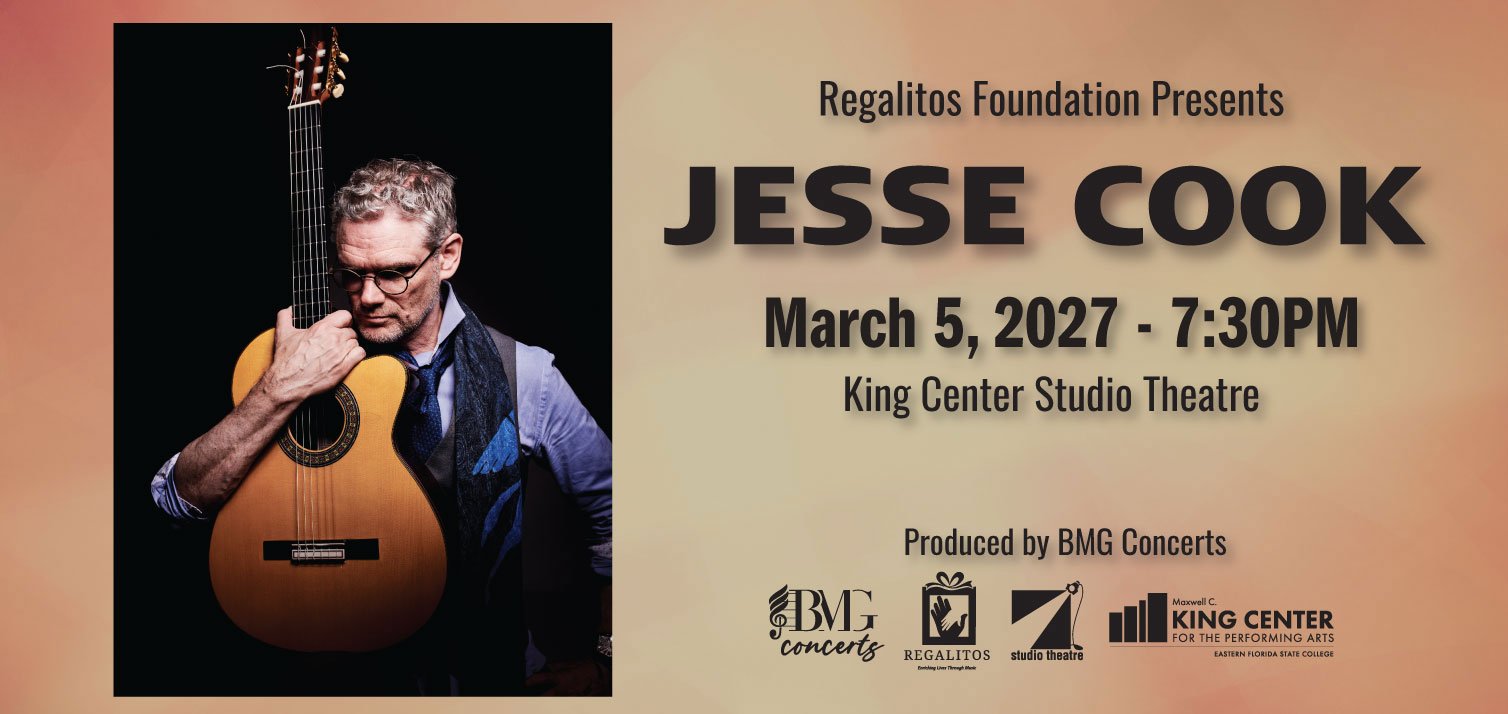 Jesse Cook returns to the King Center Studio Theatre in Melbourne, Florida on Friday, March 5, 2027 at 7:30pm. Produced by BMG Concerts.
