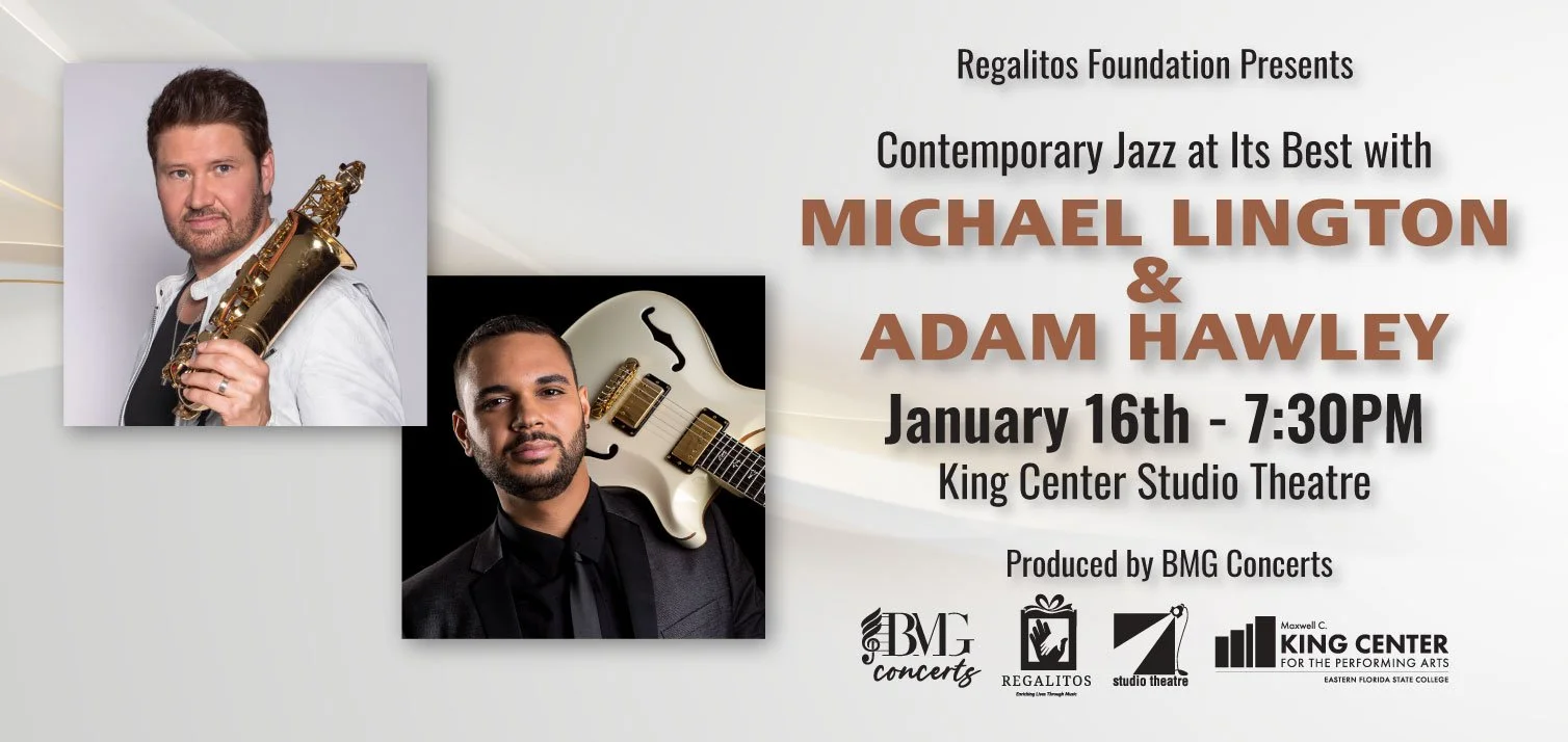 Michael Lington and Adam Hawley perform on the same stage at the King Center Studio Theatre on Friday, January 16, 2026, at 7:30 pm. Produced by BMG Concerts.